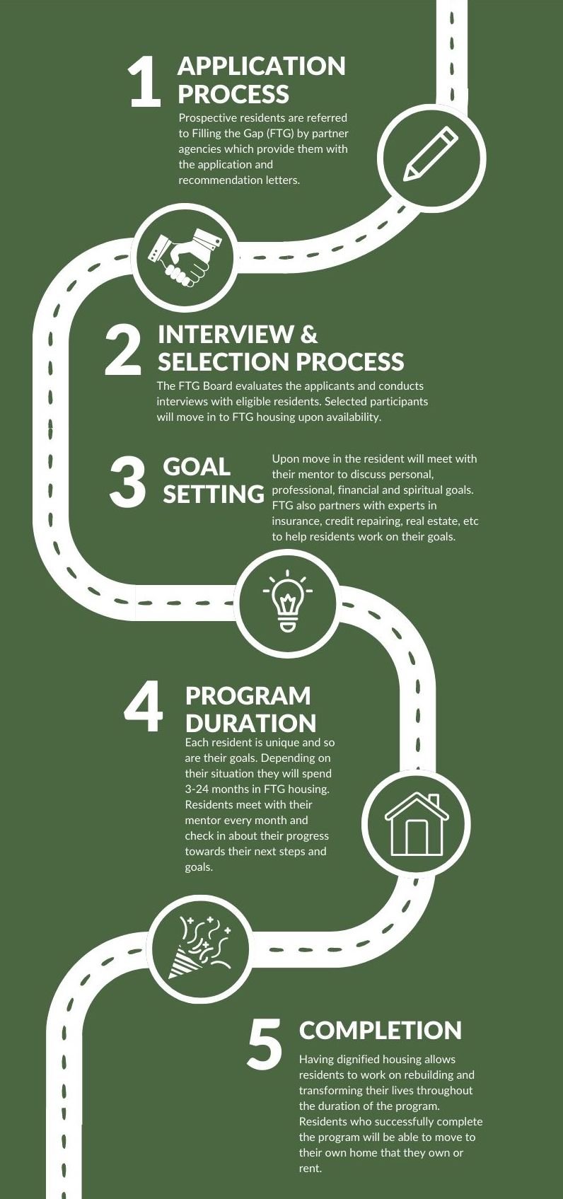 We believe by providing transformational and dignified housing that residents will be able to commit time to working on personal and professional goals while a part of the program.